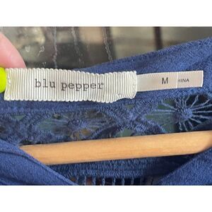 BLU PEPPER~ BLUE LACE BACK PULL OVER BLOUSE-SZ:M