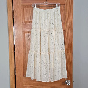 BLU PEPPER Ivory Fully Lined Skirt with Black Polka-Dots size Small