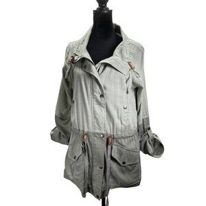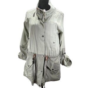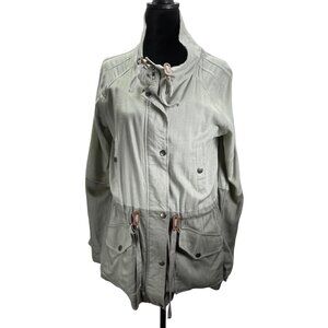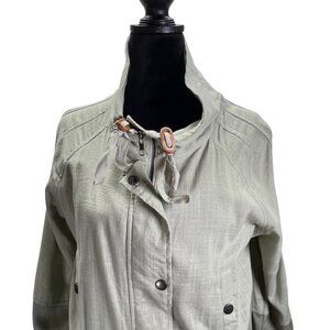 BLU PEPPER Linen Blend Green Color Block Utility Jacket Lined Size Medium