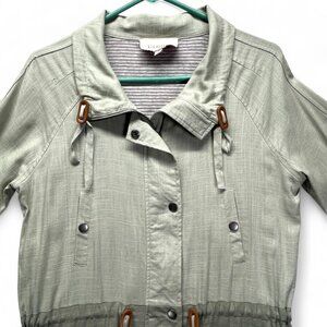 BLU PEPPER Linen Blend Green Color Block Utility Jacket Lined Size Medium Pre-Owned