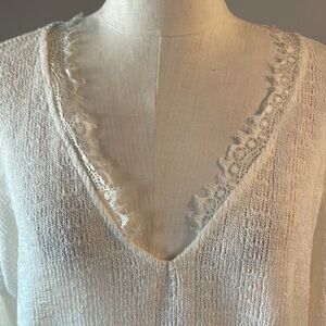BLU PEPPER OVERSIZED delicate knit sweater cotton blend deep v lace neck Small