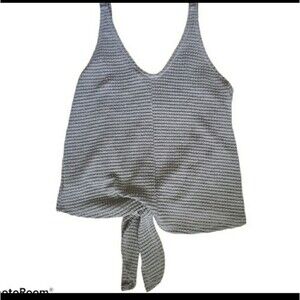 Blu Pepper Gray Open Weave Tank Top. Faux button down front, tie at bottom hem. Lightly used, great condition! I think i only wore it one time, if at all! Bust 36" - Length 20 1/2"
