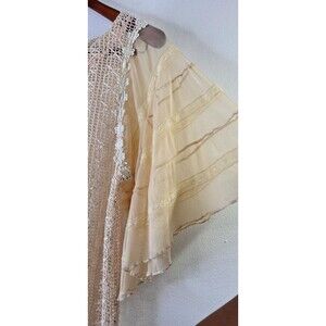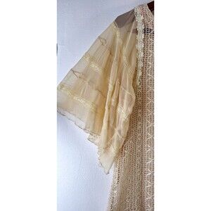 Elevate your wardrobe with the BLU PEPPER Vintage Crochet Open Knit Top, a charming addition that blends the ease of modern fashion with a touch of fairy core whimsical romantic bohemian flair. This beige blouse, sized large for a regular fit, features a delicate crochet design that exudes a playful yet sophisticated vibe, ideal for a range of occasions from casual outings to cocktail parties. Crafted from soft polyester material, this top is designed with comfort and style in mind. Its short kimono sleeves and round neckline complement the open knit pattern, making it a breezy choice for spring and summer wear. The pullover closure ensures easy dressing, and the machine washable garment is as practical as it is stylish. Whether you're headed to the beach or this Blu Pepper blouse is a versatile piece for your collection. PTP 18 in. Length 20 in.