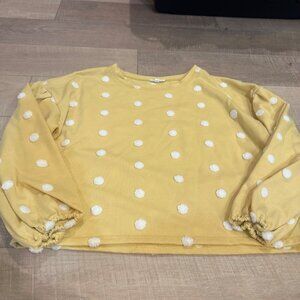BLU PEPPER WOMENS YELLOW WHITE POLKA DOT SWEATSHIRT MEDIUM
