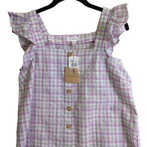 BLU PEPPER Womens size M Lilac Plaid Ruffle Sleeve Button Up Top NEW