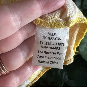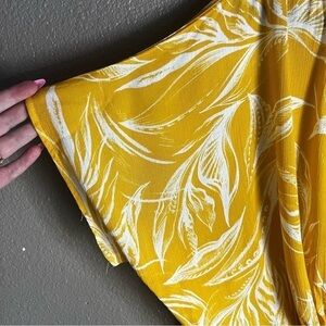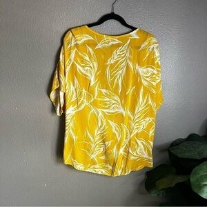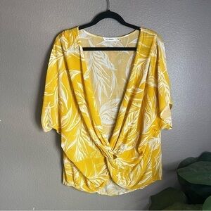 BLU Pepper Yellow and White Palm deep V Neck Top Medium