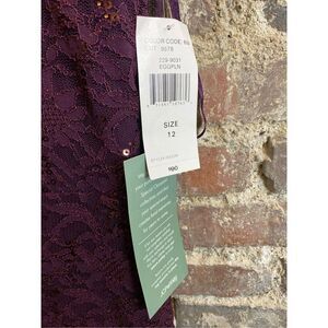 BLU SAGE Eggplant Purple Sequin Lace Layered Formal Cocktail Dress Shirt Sleeve