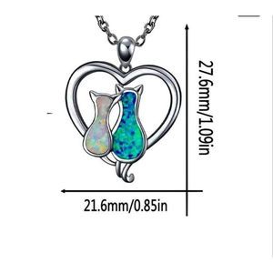 BLUE AND WHITE OPAL KITTY CAT LOVE NECKLACE