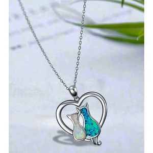 BLUE AND WHITE OPAL KITTY CAT LOVE NECKLACE