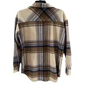 BLUE B Tan/Blue/Cream PLAID Mid-Weight Flannel BUTTON-UP Shirt Jacket Shacket S. Condition is Pre-owned. Shipped with USPS Ground Advantage.