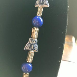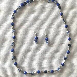 ROYAL BLUE CERAMIC BUTTERFLY AND BEADS NECKLACE AND EARRINGS