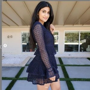 BLUE COLD SHOULDER ASYMMETRIC RUFFLE CROCHET DRESS