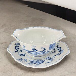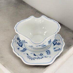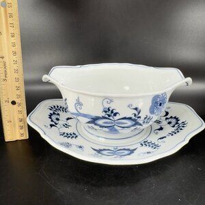 BLUE DANUBE Two Spout Gravy Boat Attached Underplate Porcelain Japan Flowers