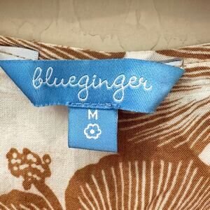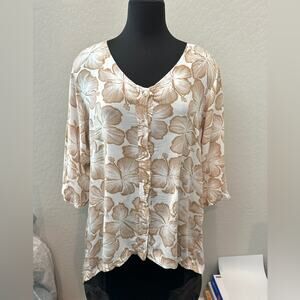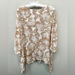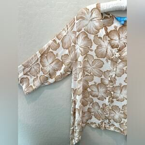 BLUE GINGER | Tan White Hawaiian Floral Lightweight 3/4 Sleeve Top | Medium