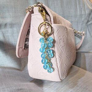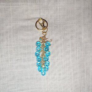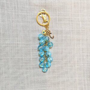 NEW BLUE & GOLD IRIDESCENT BEADED KEYCHAIN. PERSONALIZED LETTER “C” INITIAL BAG CHARM/ PURSE CHARM.