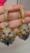 ONLY ONE PAIR IN STOCK. GOLD TONE METAL. CLEAR AND BLUE GLASS RHINESTONES. NOT HEAVY. POST BACK WITH CLASP. EARRINGS ARE 2.5''