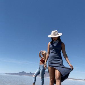 VERY STRETCHY AND COMFORTABLE SOFT BLUE DRESS WITH HIGH NECK AND SIDE SLIT