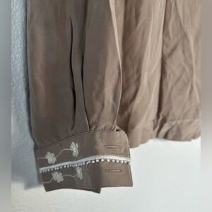 EUC, 100 % silk top, embroidered detail collar and sleeves.