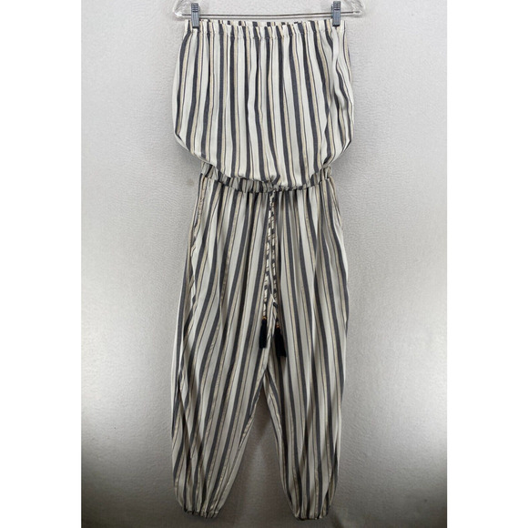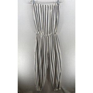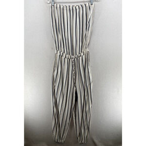 BLUE ISLAND Jumpsuit Small Striped Cinched Waist Strapless Rayon White Navy