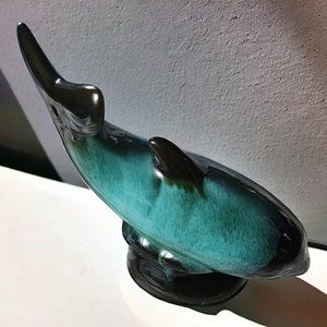 Beautiful and in EXCELLENT flawless condition. The top of the body is a gorgeous ocean aqua tone when the sun hits it. The base and lower part of the body are a black/deep green. Approximate measurements are 7.75 inches high, 9.5" x 3.5" width and depth. I have a vase by Blue Mountain Pottery I will be listing as well. Bundle the two for a super price.