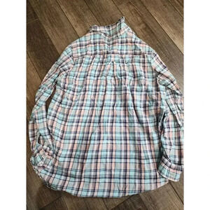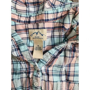 BLUE MOUNTAIN Tunic Shirt Top XL Blue Pink Plaid Popover Long Sleeve Buttons
