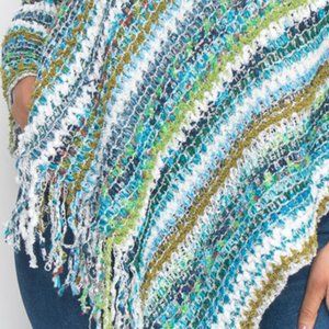 BLUE MULTI COLOR KNIT PONCHO FALL SEASON STRIPED S