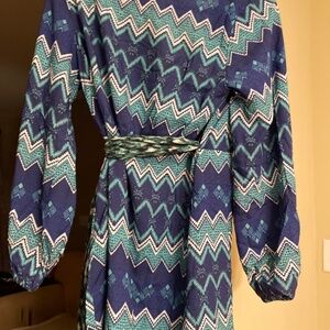 BLUE MULTI-ZIGZAG WRAP MINI DRESS