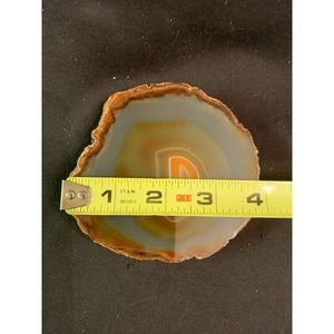 BLUE, ORANGE & BROWN BANDED AGATE SLAB. Has a thin backing on the back side. Pretty. Geode