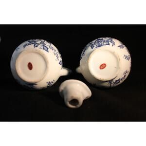 BLUE PEONY Vinegar & Oil Pitchers w/one lid 1950's Beautiful Vintage