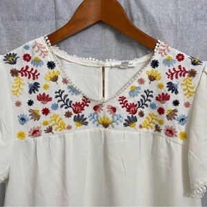 BLUE PEPPER / Floral Embroidered Short Sleeve Blouse Size M