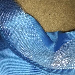 This is an ABSOLUTELY stunning blue prom dress. The style is mermaid and it has extra fabric (pictured) to hold the shape. The top is covered with pretty gems and beads but is not heavy at all! The dress zips up the back and also clips around the neck. Also, I had 3 clips (1 pictured) on the back of the dress installed to hold up the bottom of the dress so it's easier to walk. Easily fits 5'9"-5'5" and the bust area fits a C or D. Only worn once, no stains or tears! and comes with plastic cover