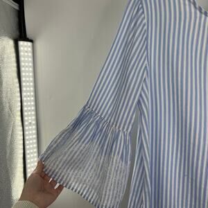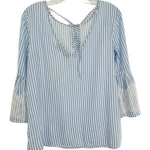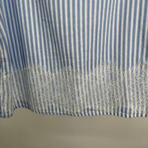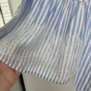 BLUE RAIN Blue White Stripe Ruffle Long Sleeve Lace Border Hem V-Neck Top S NWT