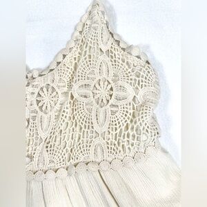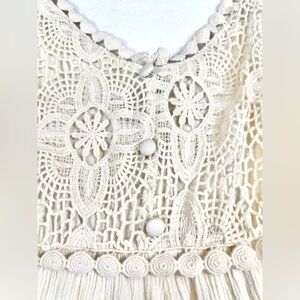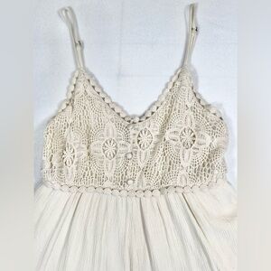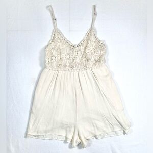 BLUE RAIN Women’s Crochet Sleeveless Romper Beige Boho Cottagecore Floral Small