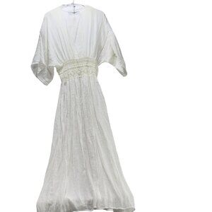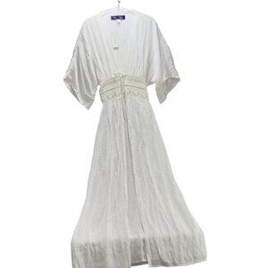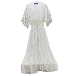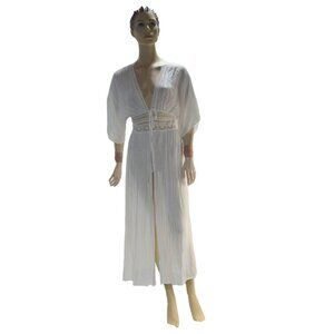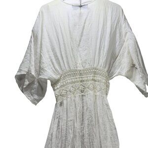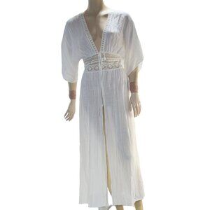 BLUE RAIN Women's Swimsuit Cover Ivory Dolan Sleeve Tie Crochet Waist Size XS