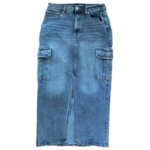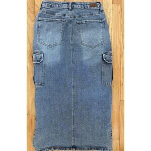 BLUE REVIVAL Denim Jeans Cargo Maxi Skirt Size 27 Recycled Y2K Utility 90s