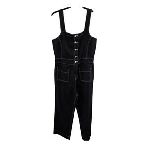 NAME: BLUE REVIVAL JUMPSUIT OVERALLS BLACK SIZE SMALL NWOT WHITE STITCHING SILVER HARDWARE CASUAL OFFICE WEEKEND 100% COTTON