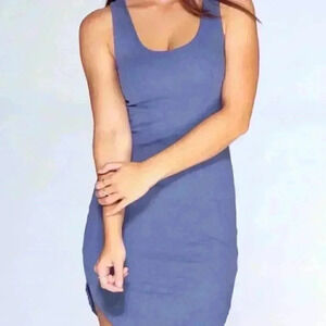DUSTY BLUE RIBBED MINI DRESS, cage black detail