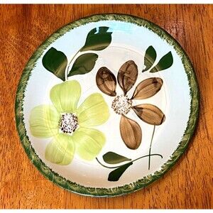 6 inch Plate in the Greenbrier pattern on the pie crust mold with green sponge effect on the rim