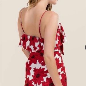 Blue Rain Romper Size Small Good condition. V Neck. 100% Polyester. Fully lined with Side zipper. Elastic at top of back. Armpit to armpit is approximately 14โ not stretched. Waist is approximately 13โ. See photos for details and description.