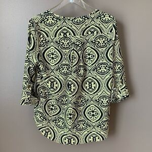 Three quarter Sleeves embellished with tarnished gold buttons.