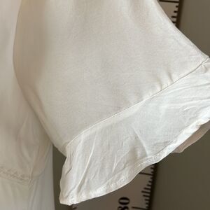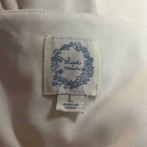 BLUE Rain white dress with crocheted stitching and fabric covered buttons size L
