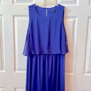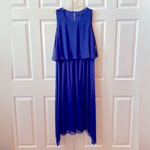 BLUE SLEEVELESS CREPE SHARK BITE BOTTOM DRESS LINED SIZE 18 NWT