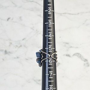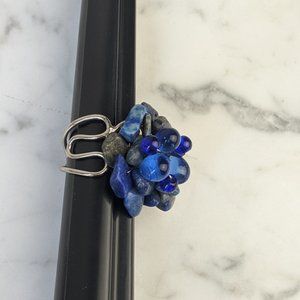 VIBRANT Blue Stone Cluster adjustable ring. Large size for a brilliant pop of blue. Polished deep blue rounds mixed with irregular, organic blue nuggets. All woven together in a silver tone setting. Resembles a rose or flower. Wear it with a boho or western ensemble or it could also pair well with something romantic & flirty.