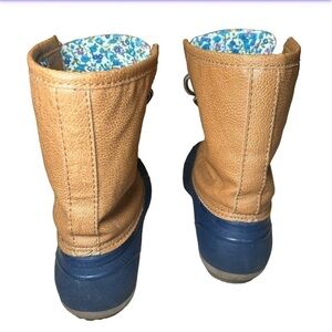 BLUE SUEDESHOES BROWN & NAVY BLUE RUBBER DUCK BOOTS, SIZE 7