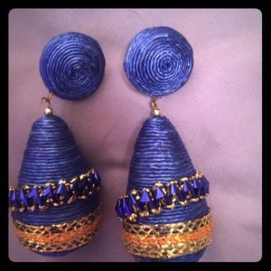 BLUE TEARDROP MATERIAL EARRINGS