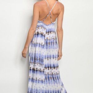 Sleeveless deep V-neck strappy open cross back split front tie-dye maxi dress