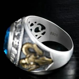 Blue stoned Masons ring with the masons triangle and horned sheep