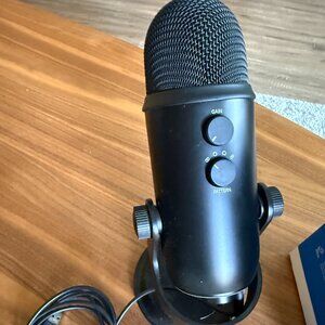 This Blue Yeti Microphone is in MINT, open-box condition. It was taken out of the original box, tested, and stored—it has NO WEAR and works perfectly. Comes complete with all original accessories.