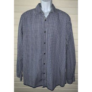 BLUE by Pronto Uomo Sz XXL Blue White Check Snap Front Shirt L/S Flip Cuffs EUC