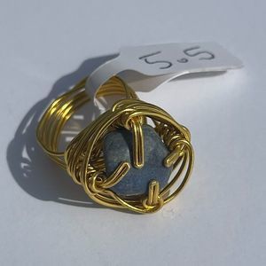 BLUE AVENTURINE QUARTZ ADJUSTABLE WIREWRAPPED CHUNKY GEMSTONE RING